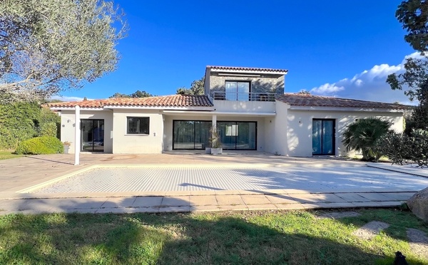 Au coeur d'un domaine très prisé mais HORS LOTISSEMENT (sans les charges de copropriété de Marina di Fiori), Sise sur 1.196m2 de terrain clos, arboré, paysagé et sans vis-à-vis, face à un terrain inconstructible; Villa de type 6 sur 2 niveaux (année de construction: 2011) d'une superficie de 158m2 hab. 150m2 de terrasse en partie couverte ou ombragée avec PISCINE alkor CHAUFFÉE 12M X 4M, POOL-HOUSE/SALLE DE SPORT cliatisée et JACUZZI 6 PLACES (mai 2022). CARPORT, 2 abris de jardin, Portail électrique télécommandé, Alarme. VENDUE MEUBLÉE ET ÉQUIPÉE. EXCELLENTE RENTABILITÉ LOCATIVE. Exposition Sud. Prix: 1.190.000€. - EXCLUSIVITÉ CYRNEA IMMOBILIER - Porto-Vecchio ville: VILLA CONTEMPORAINE T-5 avec jardin, terrasse solarium et PISCINE À DÉBORDEMENT, 2 GRANDS GARAGES, CARPORT/atelier, belle vue dégagée.
